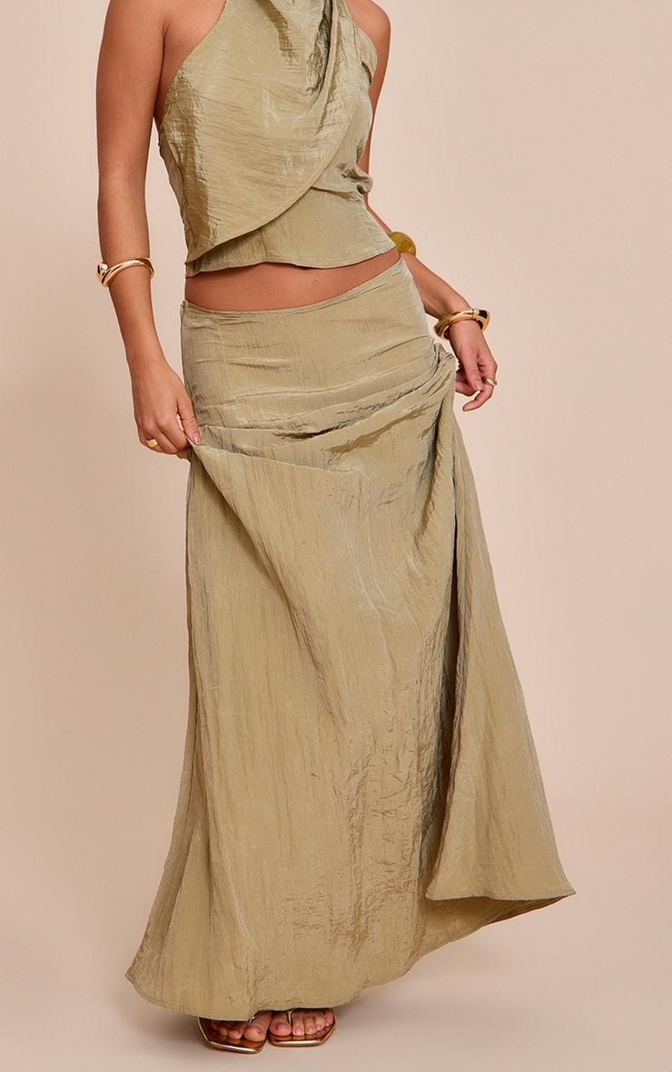 You’ll adore the sage khaki textured woven floaty maxi skirt for its effortless flow and muted tone. Crafted from breathable woven fabric with subtle texture and a floaty maxi length for graceful movement. The sage khaki hue offers a versatile, earthy palette perfect for layering. Pair with the matching top and sandals for an easy, chic finish.Length approx 114.5cm/45inch (Based on sample size US 4)Model wears size UK 8/ EU 36/ AUS 8/ US 4Model Height - 5ft 7inchp]:!mb-4inch>Brand: PrettyLittleThingCategory: Co-ordsProduct type: Maxi SkirtColor: Sage KhakiMaterial: Woven CrepeOccasion: Occasion