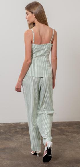 This cutie features a beautiful sage color and white stripes, thin straps and front functional buttons.