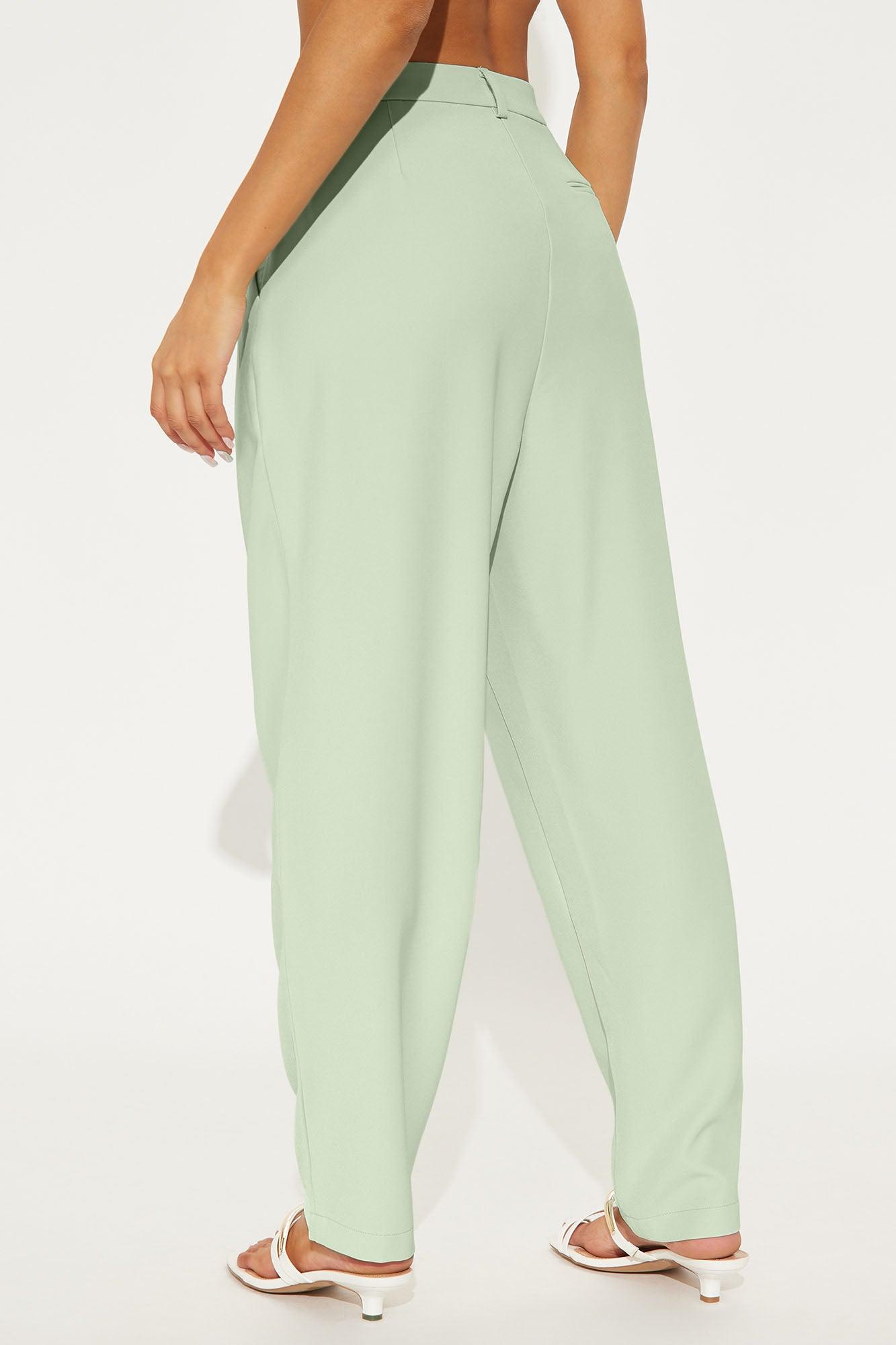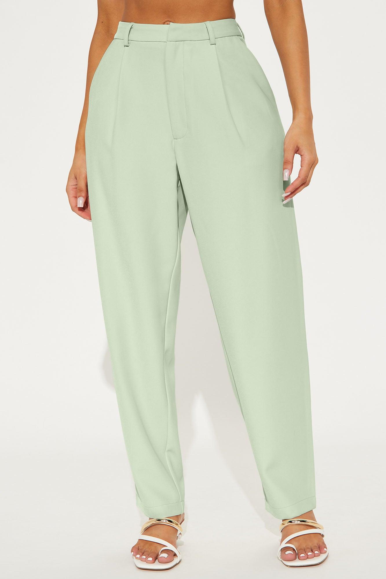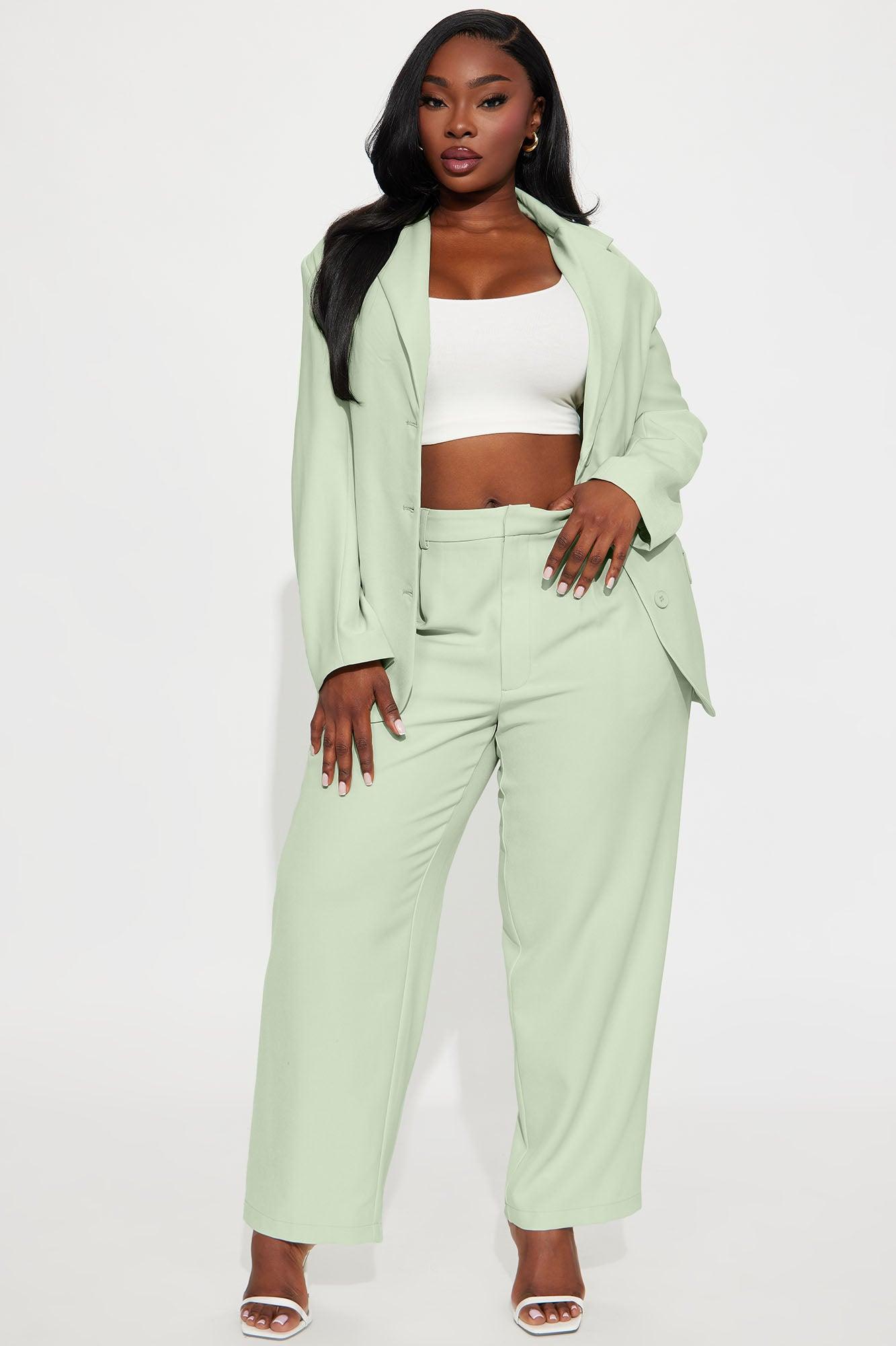 Available In Black And Mint. Trouser Pant Mid Rise Hook & Eye Closure Zip Fly Hand & Back Pockets Pleated Front Straight Leg Non Stretch 31" Inseam Pair With "Said Something Oversized Blazer" 95% Polyester 5% Spandex Imported California Proposition 65WARNING: Cancer and Reproductive Harm - www.P65Warnings.ca.gov.