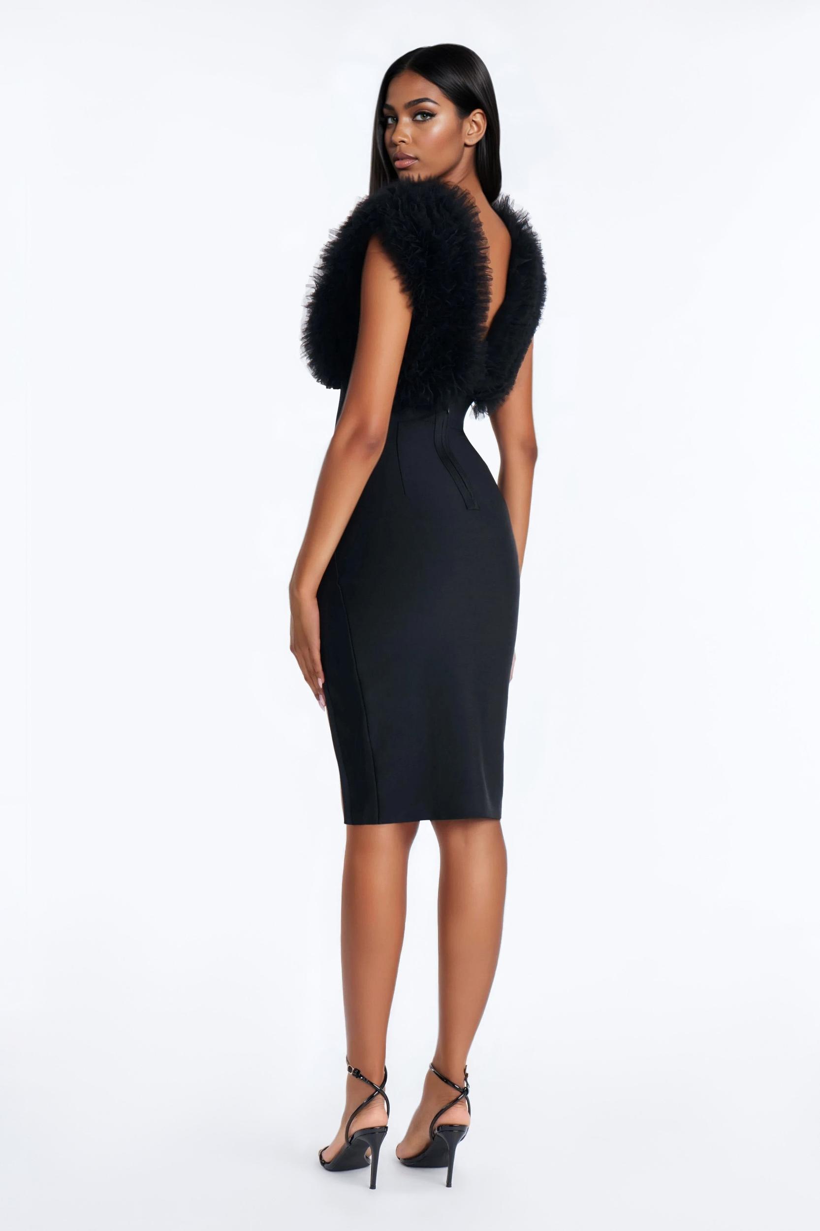 Saidee Bandage Fluff Midi Dress - Black Female