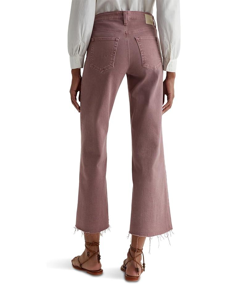 The AG® Jeans Saige Mid-Rise Wide Leg in Sulfur Dusty Mauve is a flattering mid waisted wide leg jean with a seasonal ankle length and slight flare at the bottom.