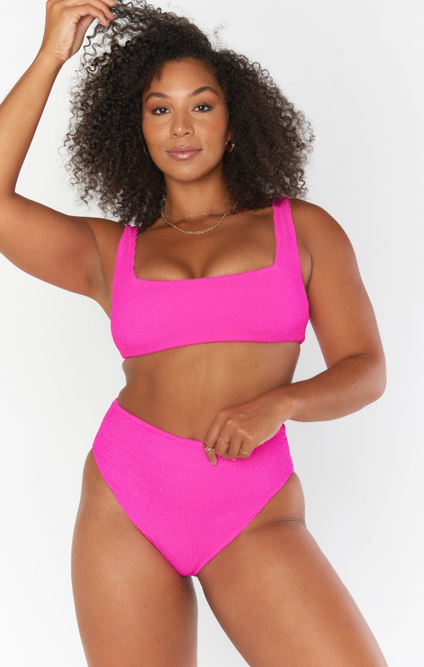 Hot pink and scrunch?! What more could you ask for? We had the pleasure of designing alongside Sabrina Chazen, to bring you a size inclusive collection of hot pink styles for you, your mini, and even your tween this time! Look and feel on point in our scrunch swim pieces with extra hold fabric that flatters and fits just right!Lounge on the beach and enjoy the sound of the waves or sit poolside and soak up the rays! High waisted and full coverage, this swim bottom is as cute as it is comfortable. Pair with the matching Hot Tub Top!