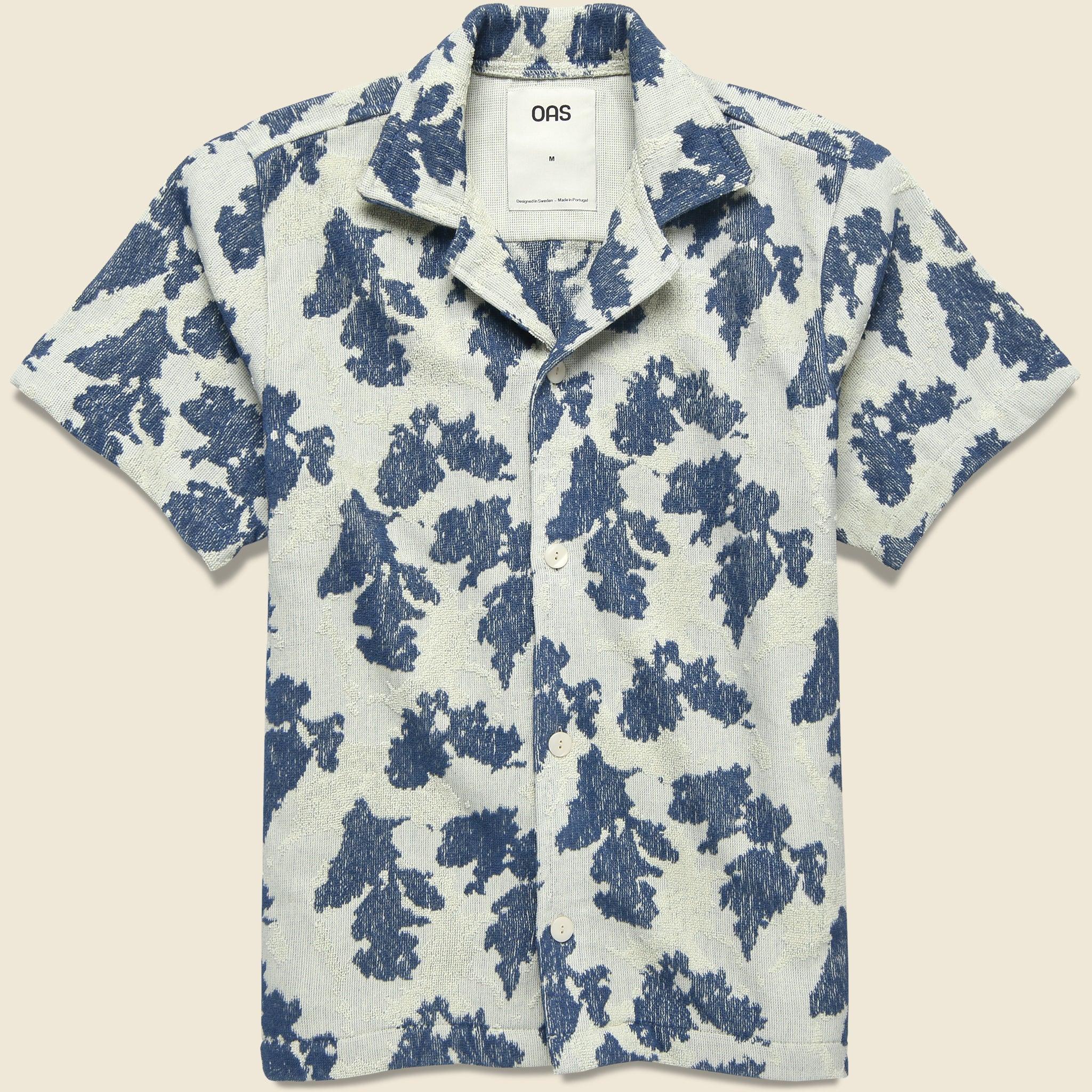 This Terry Shirt from OAS is made with a soft, midweight cotton that’s woven with a cloudlike, textured jacquard pattern inspired by the big blue, summer skies. It’s tailored with a relaxed fit that runs true to size and comes with a simple, four-button placket, an open camp collar, and a slightly curved hem to round things out.