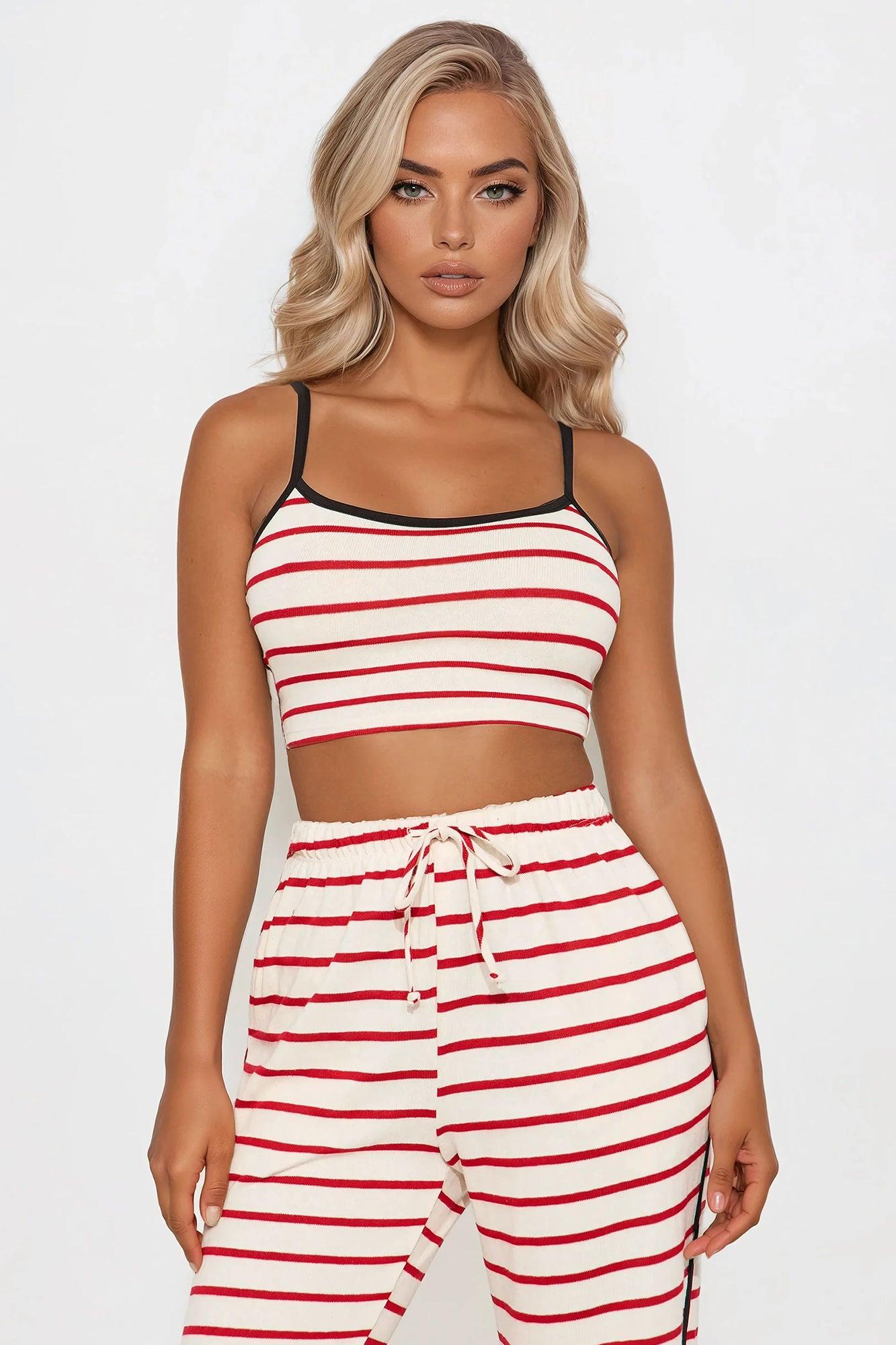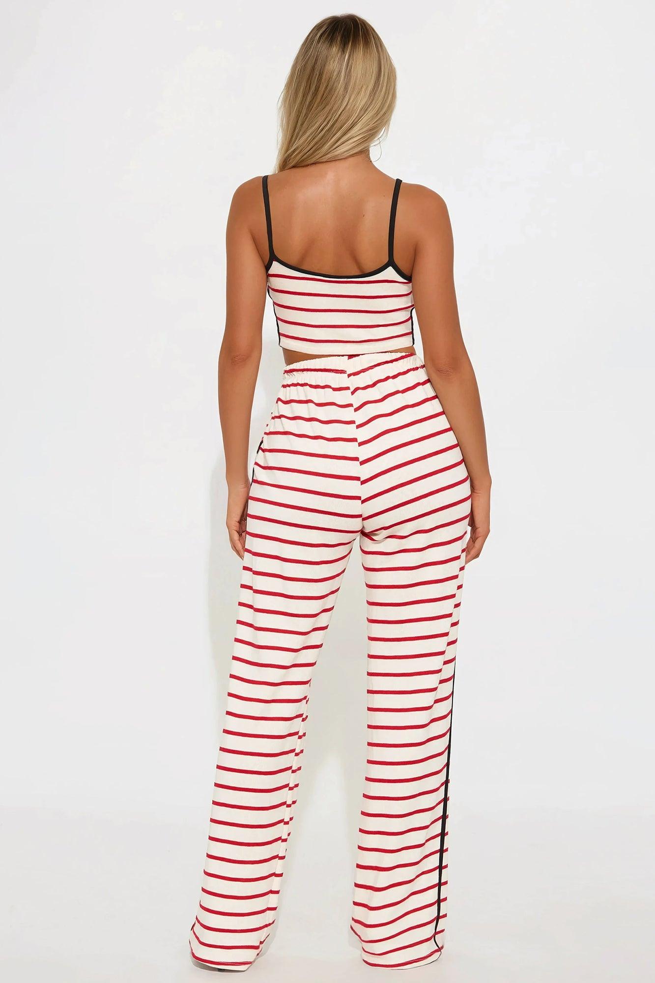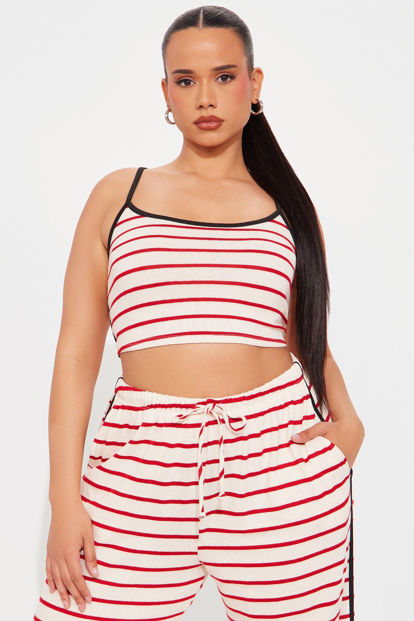 Available In Red/combo. Cropped Cami Top and Pant Set Stretch Regular 32" Inseam Drawstring Waistband Pockets Self:77%Cotton 23%Rayon Contrast:95%Polyester 5%Spandex Imported California Proposition 65WARNING: Cancer and Reproductive Harm - www.P65Warnings.ca.gov.