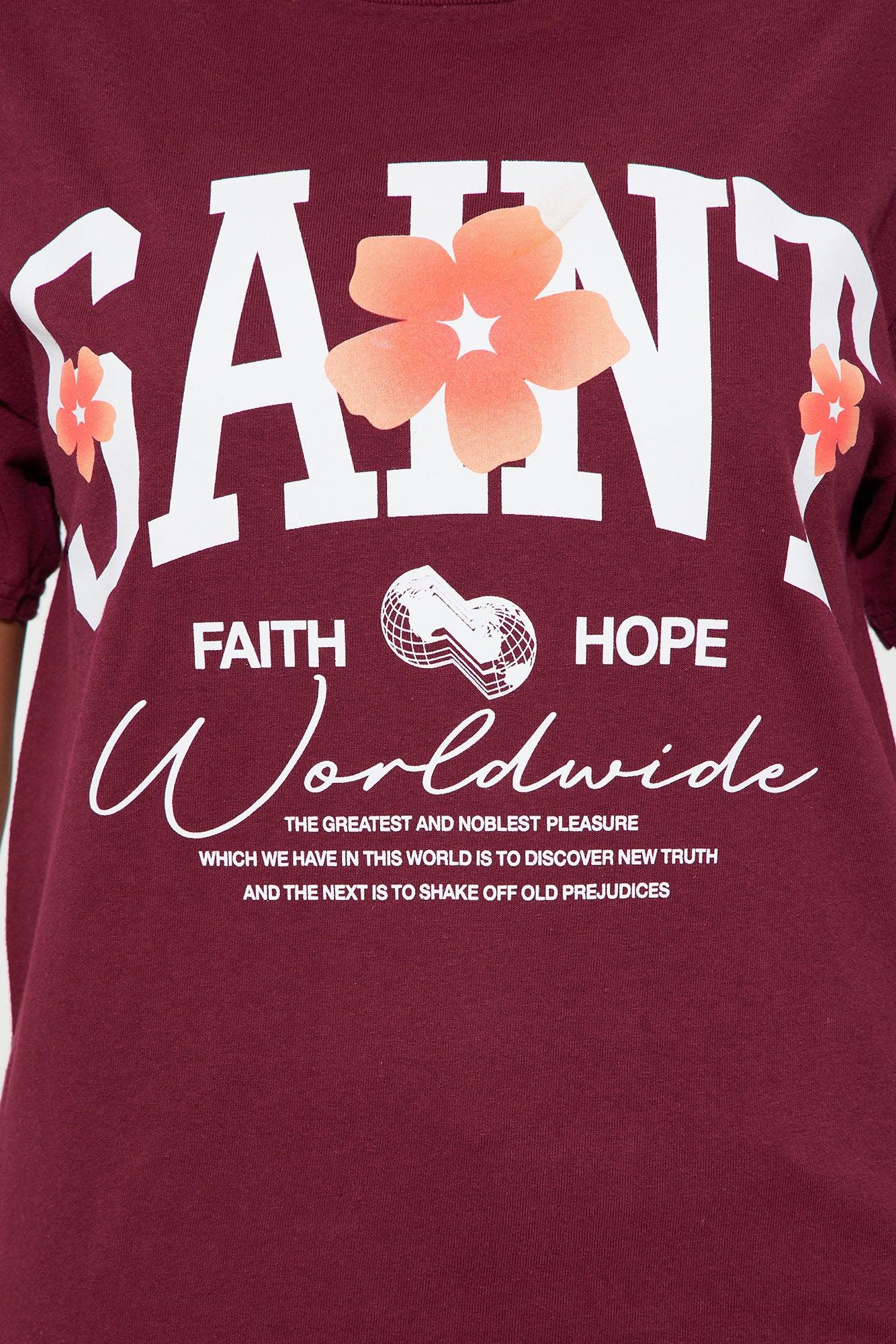 Saint Faith And Hope Worldwide Vintage Washed Tee - Burgundy Female