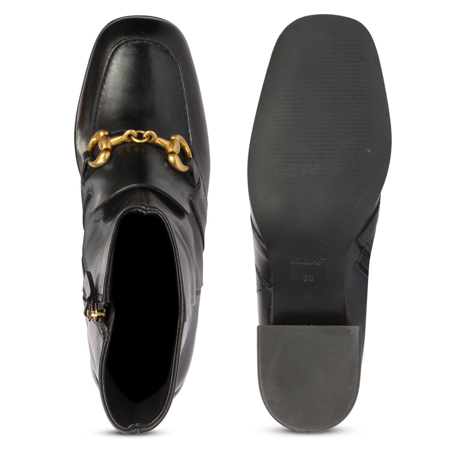 Elevate Your Look with SaintG Daffodil Patent Black Leather Ankle Boots – Chic Edge Meets Timeless EleganceStep into contemporary sophistication with the SaintG Daffodil Bootie, featuring striking horsebit detailing and high-gloss patent black leather. These ankle boots offer a perfect fusion of modern design and classic charm, making them a versatile addition to any wardrobe.Key Features:High-Gloss Patent Leather: Crafted from premium patent black leather, these ankle boots exude a sleek, polished finish that adds a touch of luxury to your ensemble.Distinctive Horsebit Detail: The elegant horsebit accent enhances the chic appeal of the Daffodil style, providing a unique and sophisticated touch.Modern Silhouette: The contemporary bootie design offers a fashionable update to traditional ankle boots, suitable for both casual and formal occasions.Comfort and Durability: Equipped with a cushioned insole and durable outsole, these boots ensure all-day comfort and stability, making them perfect for extended wear.Product Specifications:Brand Name: SaintGStyle: Daffodil BootieMaterial: Patent Black LeatherDetail: Horsebit AccentInsole: CushionedOutsole: Durable