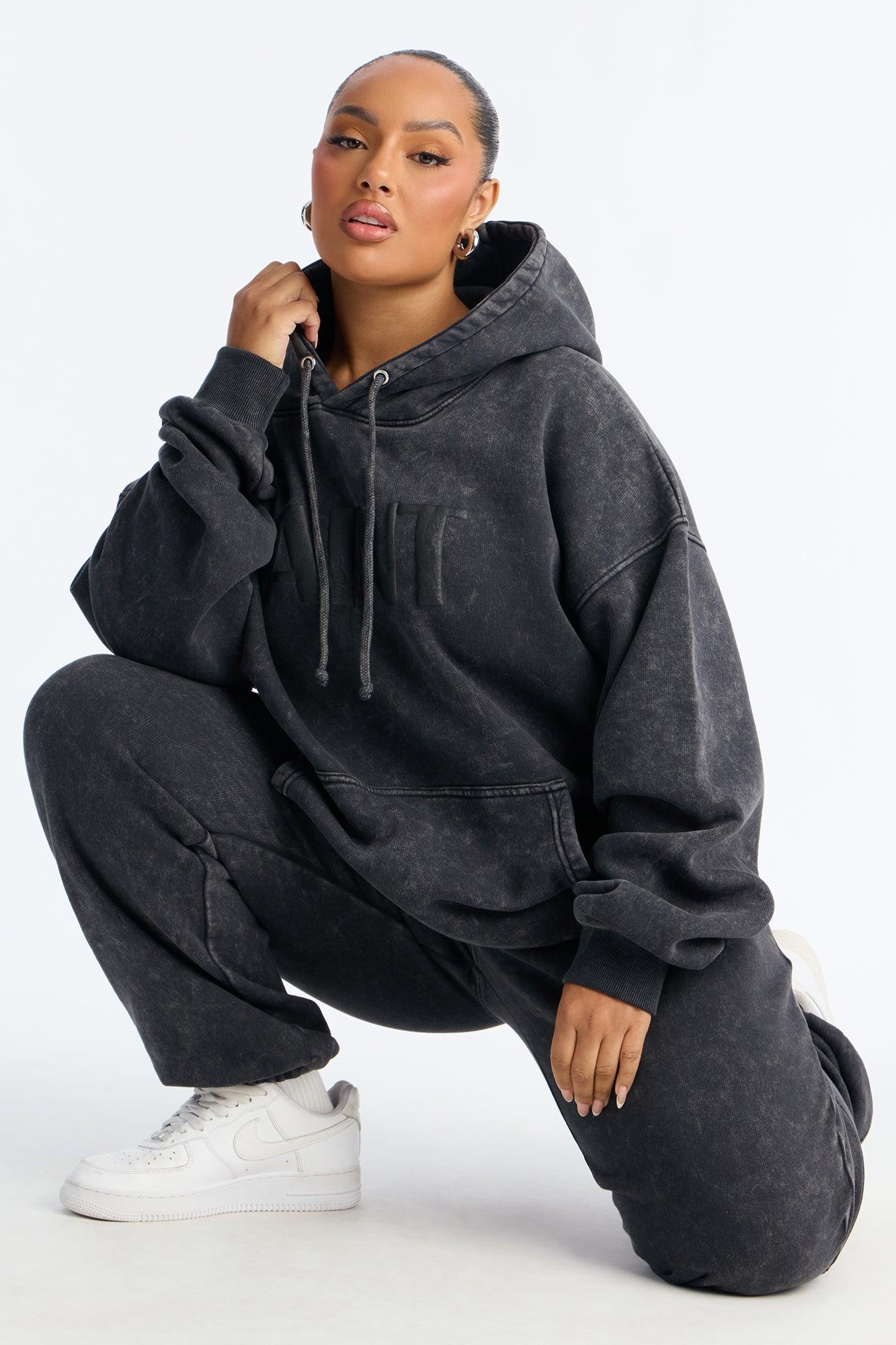 Saint Washed Fleece Hoodie Jogger Pant Set - Charcoal Female