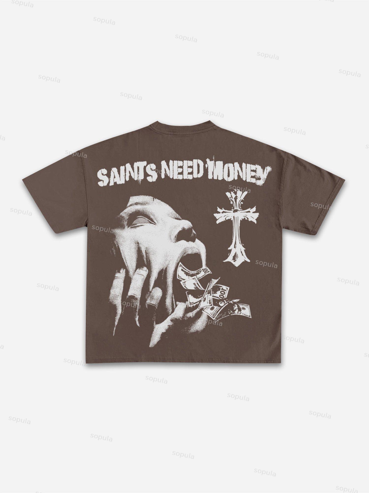 Saints Need Money Too Retro Graphic Cotton T-shirt