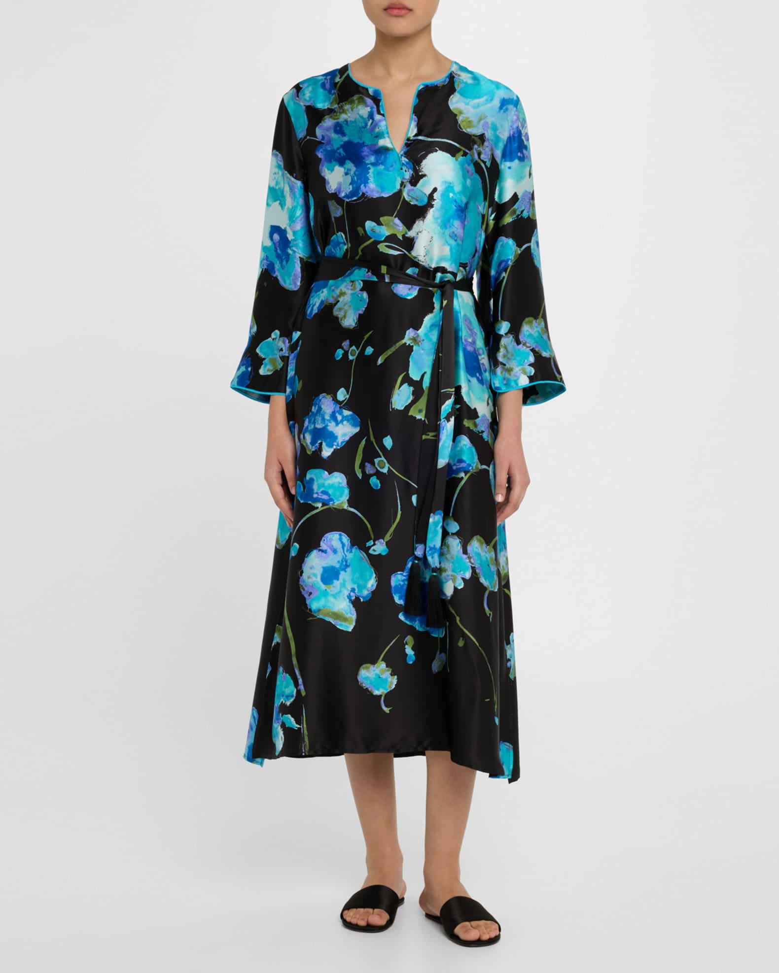 Sakura Matsuri Floral-Print Silk Midi Dress