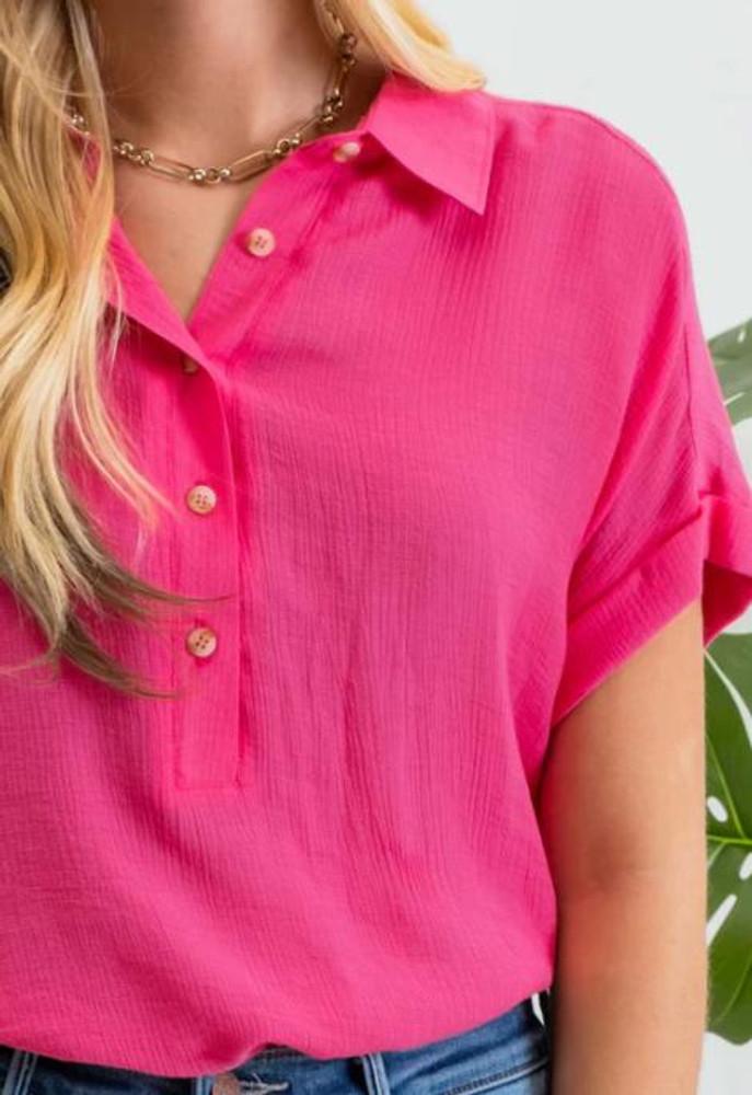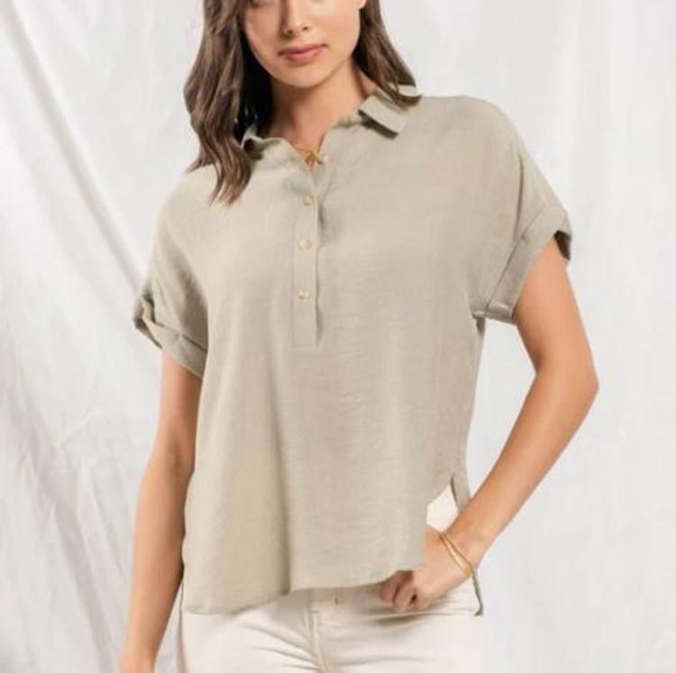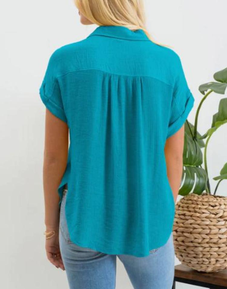 SALE blu pepper® Ladies' S/S Cuffed Mid Button Blouse