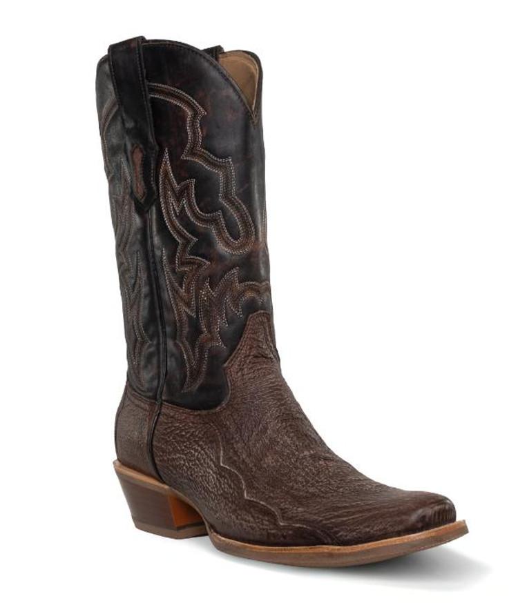 VAMP LEATHER: SHARK / LINING: COWHIDE / GENDER: MEN / TOE TYPE: HORSEMAN TOE / SHAFT HEIGHT: 12 1/2" / LOWER SHAFT WIDTH: 11 3/4" / HEEL TYPE: RIDING HEEL / HEEL MATERIAL: RUBBER / HEEL HEIGHT: 2" / SOLE MATERIAL: RUBBER / CONSTRUCTION: GOODYEAR WELT