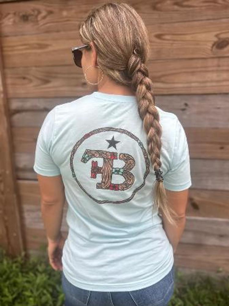 SALE Fancy Broke® Ladies' Ice Blue S/S Tooled Brand T-Shirt