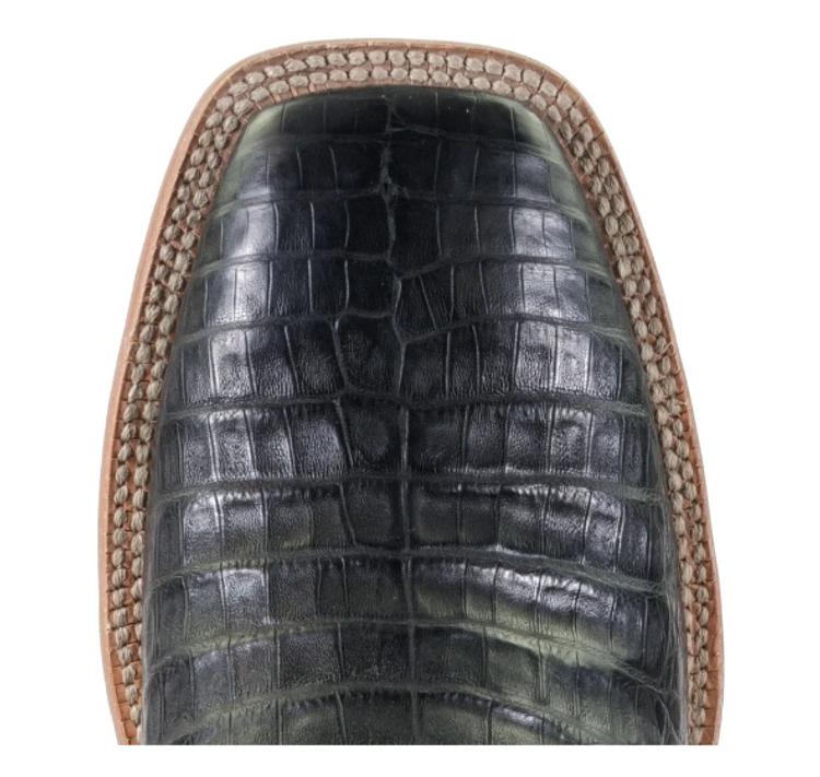A striking boot that commands attention. The Big Bow is made with black belly matte caiman leather on the vamp and honey vintage goat leather on the upper, this boot features a broad square toe and a comfortable stockman block heel. The color combination on this historic HYER War Bonnet stitch pattern is so eye-catching you might be tempted to tuck your jeans in every time you wear these. The goodyear welt construction adds durability and the oiled infused leather outsole will hold up to all the dirt, sh*t and water of a working ranch. The channeled leather insole with a dual-density removable insert ensures that your feet stay comfortable all day long.