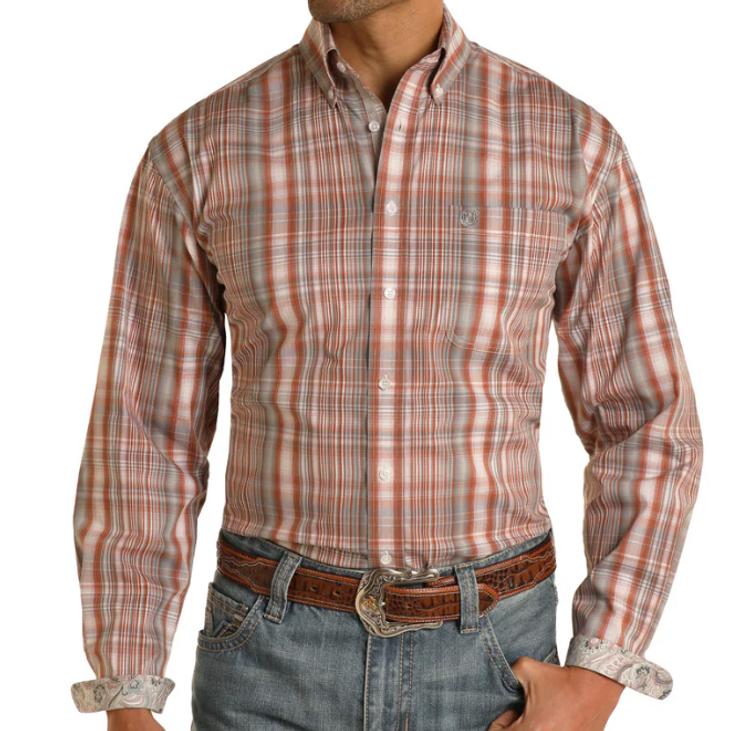 SALE Panhandle Rough Stock® Men's L/S Burnt Orange Plaid Button Shirt