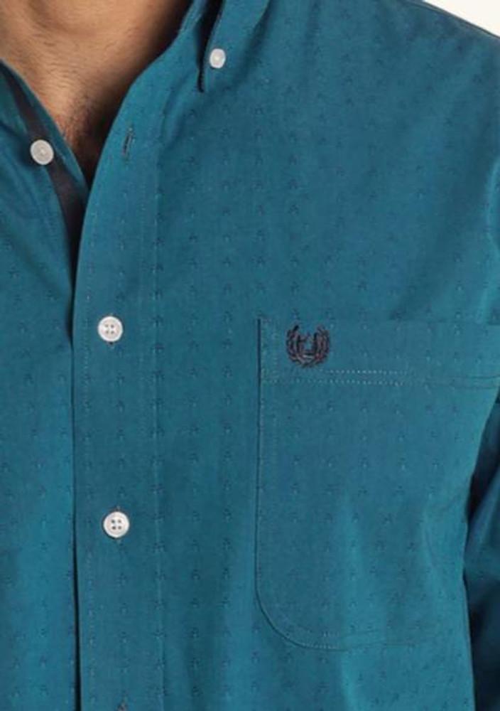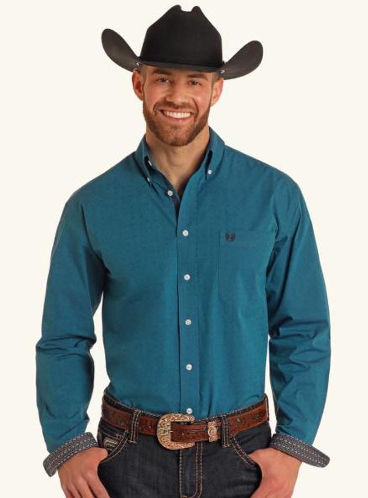 SALE Panhandle Rough Stock® Men's L/S Teal Iridescent Dobby Button Shirt