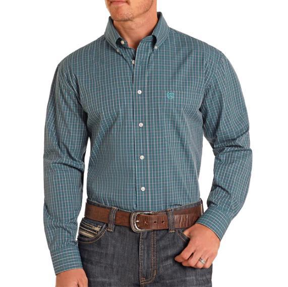 SALE Panhandle Slim® Men's L/S Teal Dobby Checked Button Shirt