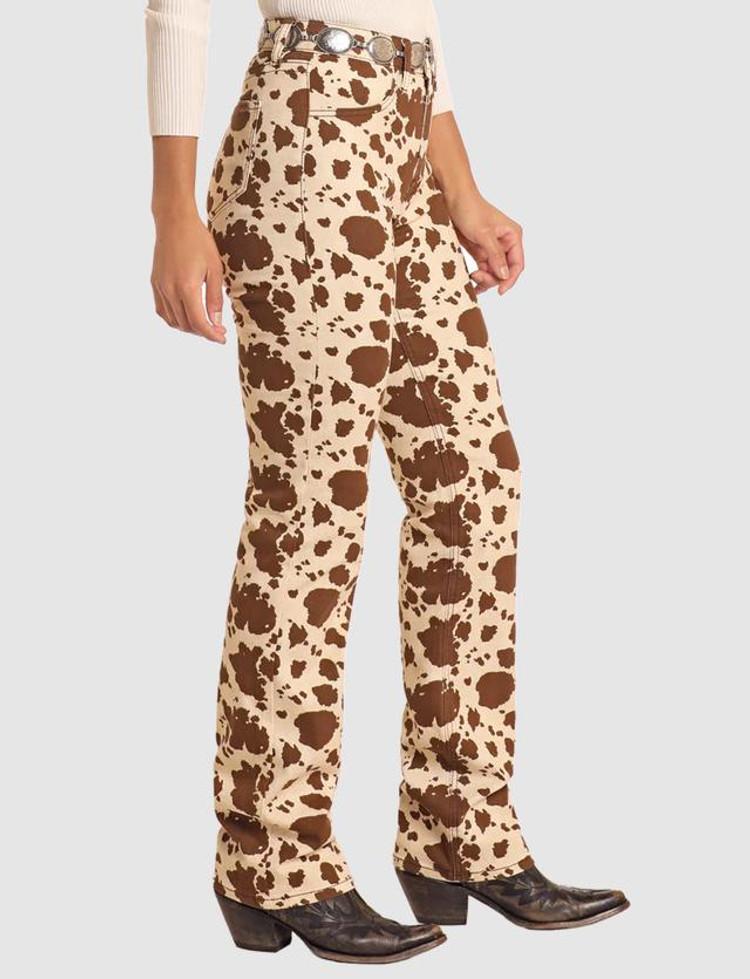 SALE Rock & Roll Denim® Ladies' Beige/Brown Cowhide HR Modest Boot Cut Jeans