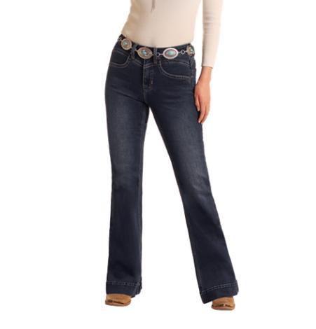 SALE Rock & Roll Denim® Ladies' Dark Wash HR Plain Pocket Trouser Jeans