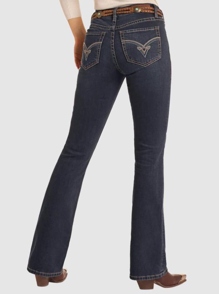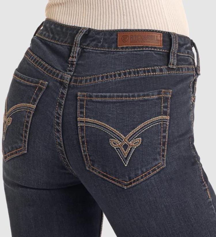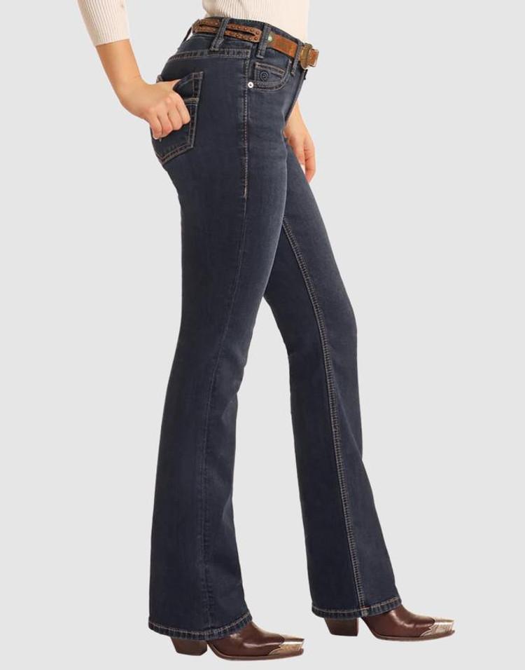 SALE Rock & Roll Denim® Ladies' Dark Wash Rope Stitch HR Modest Boot Cut Jeans