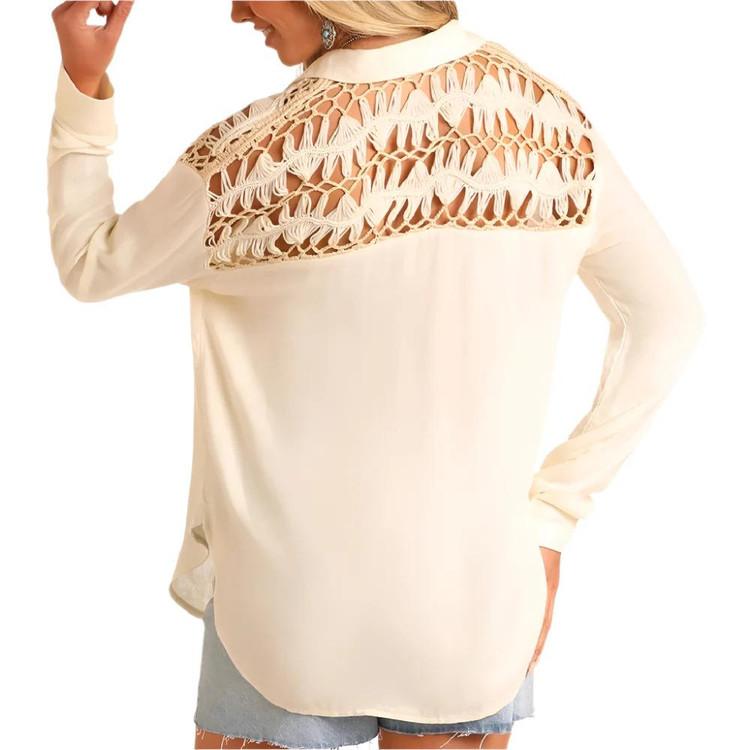 SALE Rock & Roll Denim® Ladies' L/S Cream Crochet Yoke Button Shirt