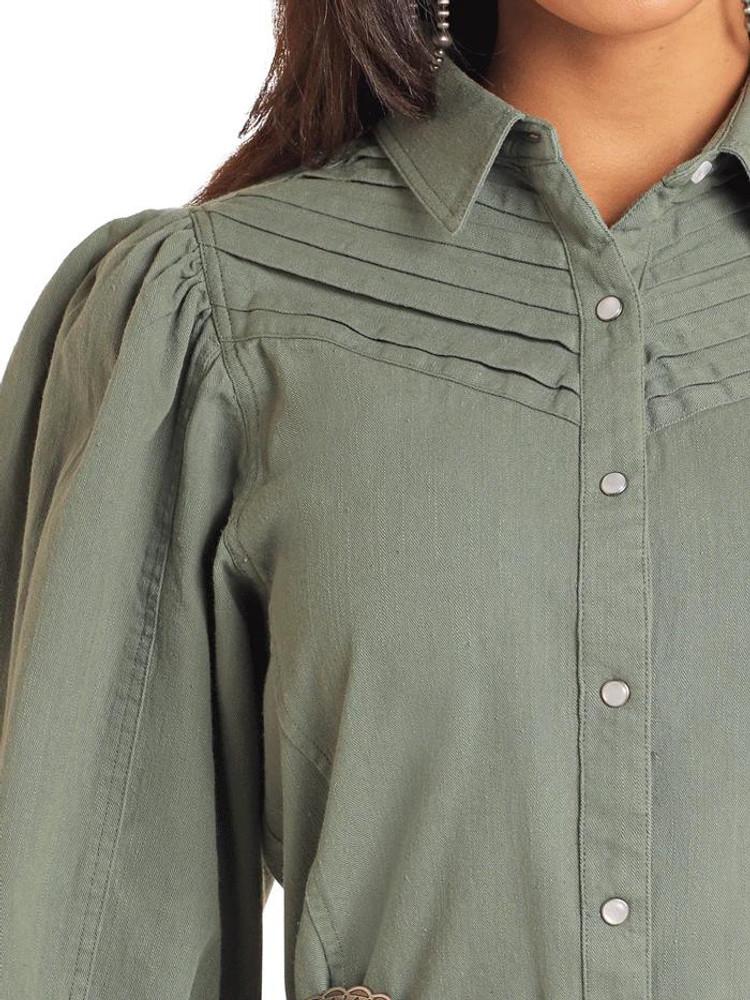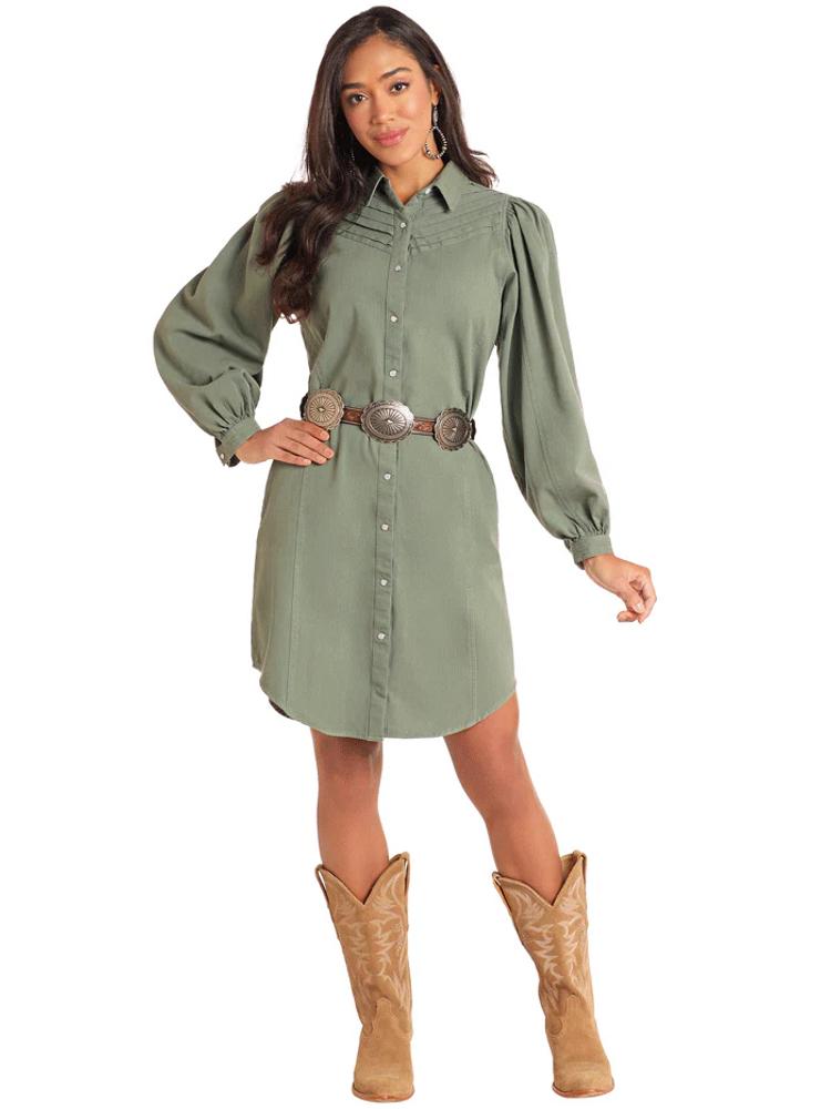SALE Rock & Roll Denim® Ladies' L/S Olive Western Snap Shirt Dress
