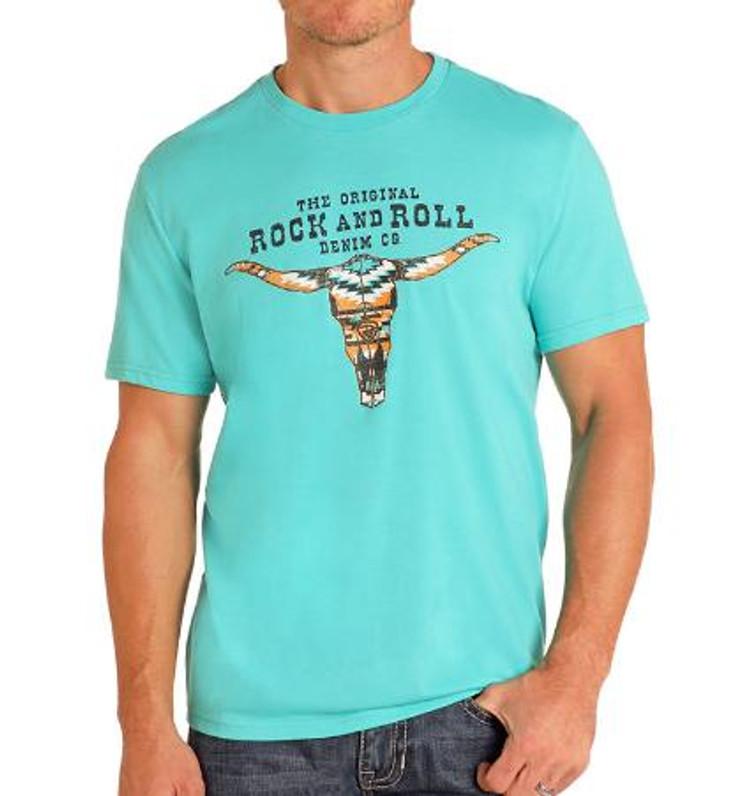 SALE Rock & Roll Denim® Men's S/S Turquoise Aztec Steer Head Graphic T-Shirt
