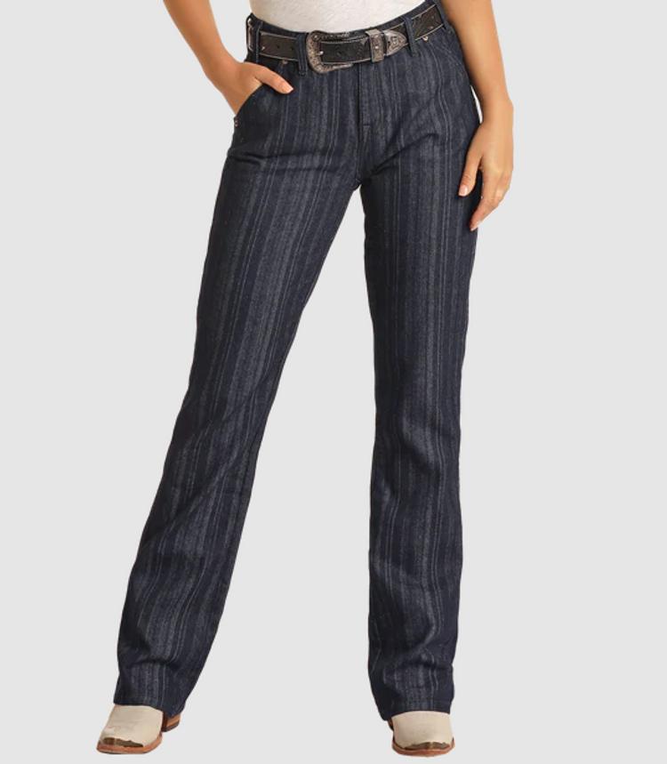 SALE Rock & Roll Hooey® Ladies' Med Wash HR Striped Boot Cut Jeans