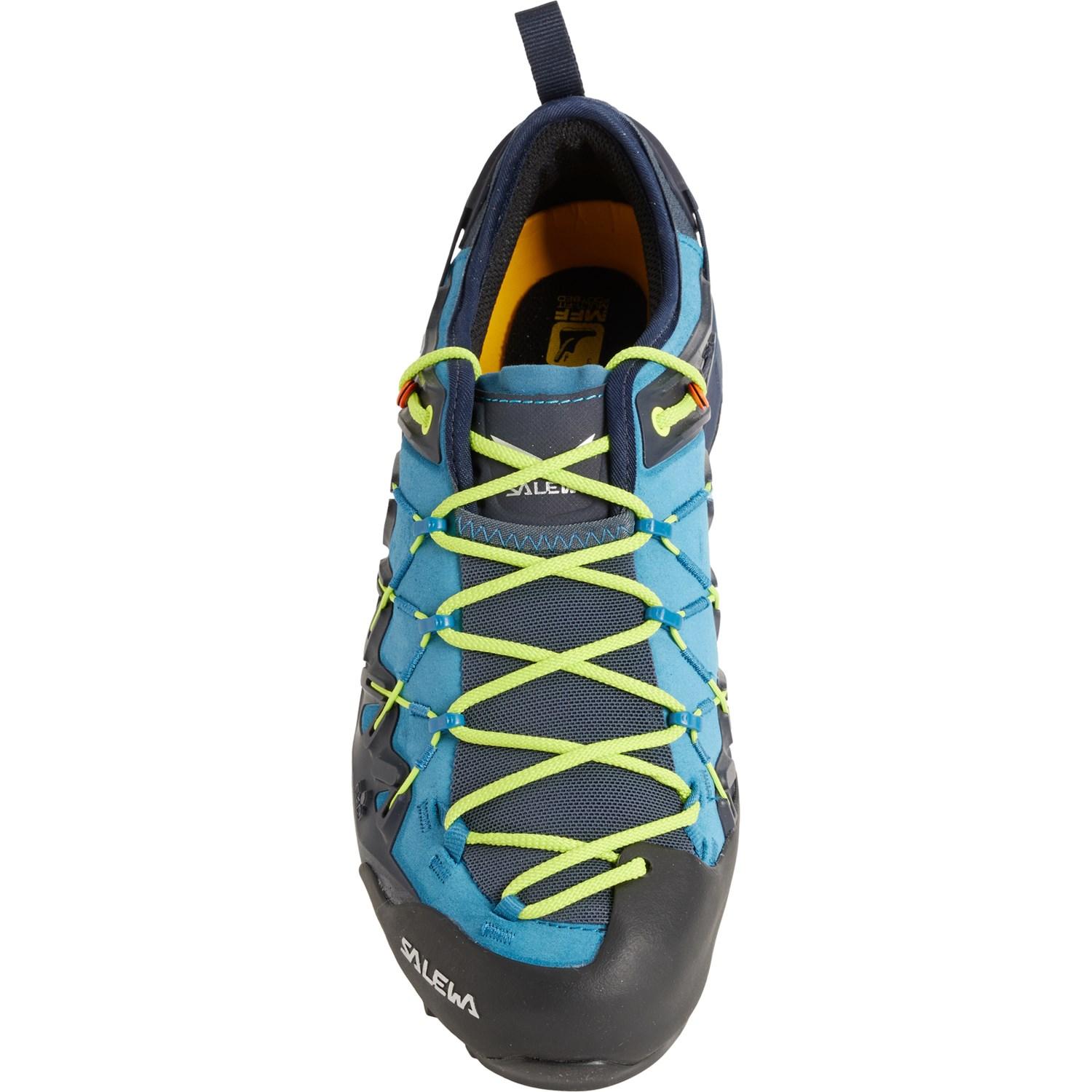 Salewa Wildfire Edge Approach Shoes (For Men) in Premium Navy/Fluo Yellow at Sierra. Celebrating 30 Years Of Exploring.