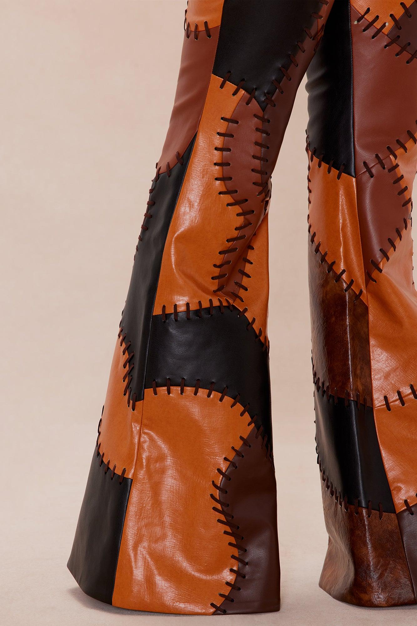Sally Faux Leather Flare Pant - Brown/combo