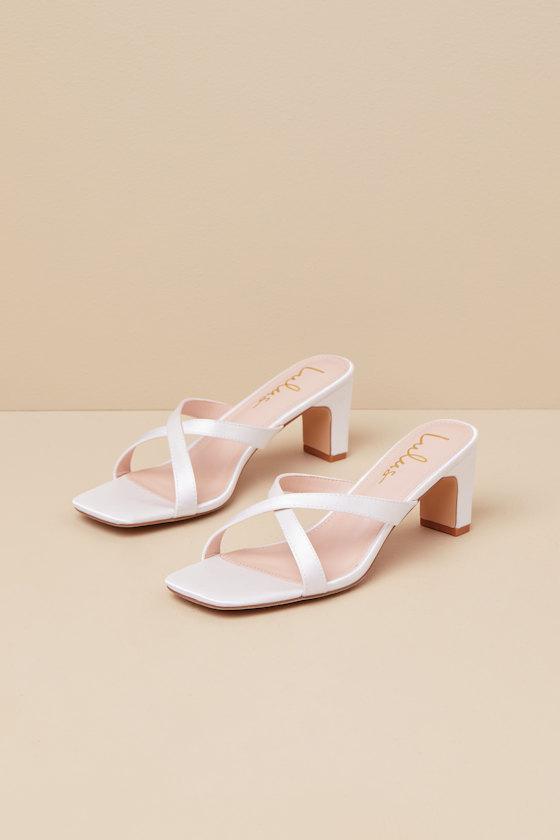 Exquisite ensembles just wouldn't be complete without the Lulus Salmma White Satin Low Heel Slide Sandals! Sleek woven satin shapes these sensational sandals that feature a trendy square footbed and slender vamp straps that crisscross atop an open-toe upper. A chic, low-blade heel completes the sleek slide-on silhouette!