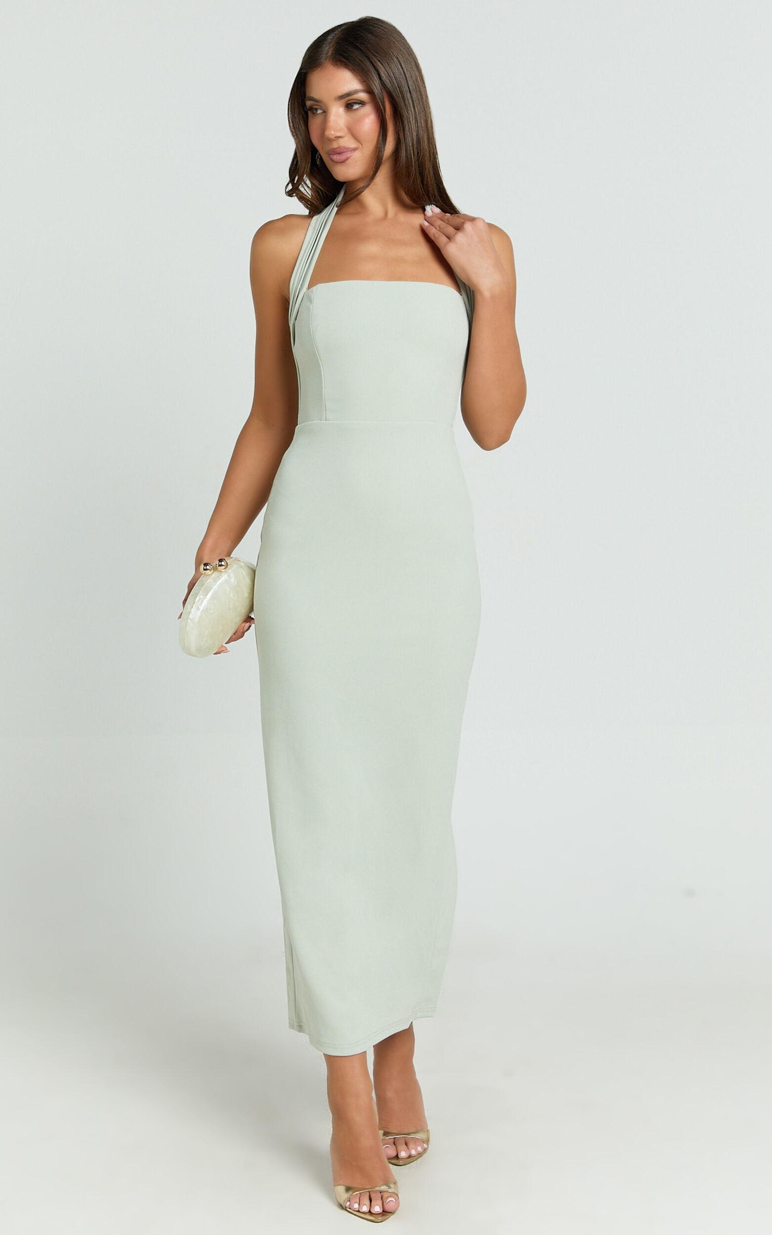 Salome Midi Dress - Halter Neck Column Dress in Sage