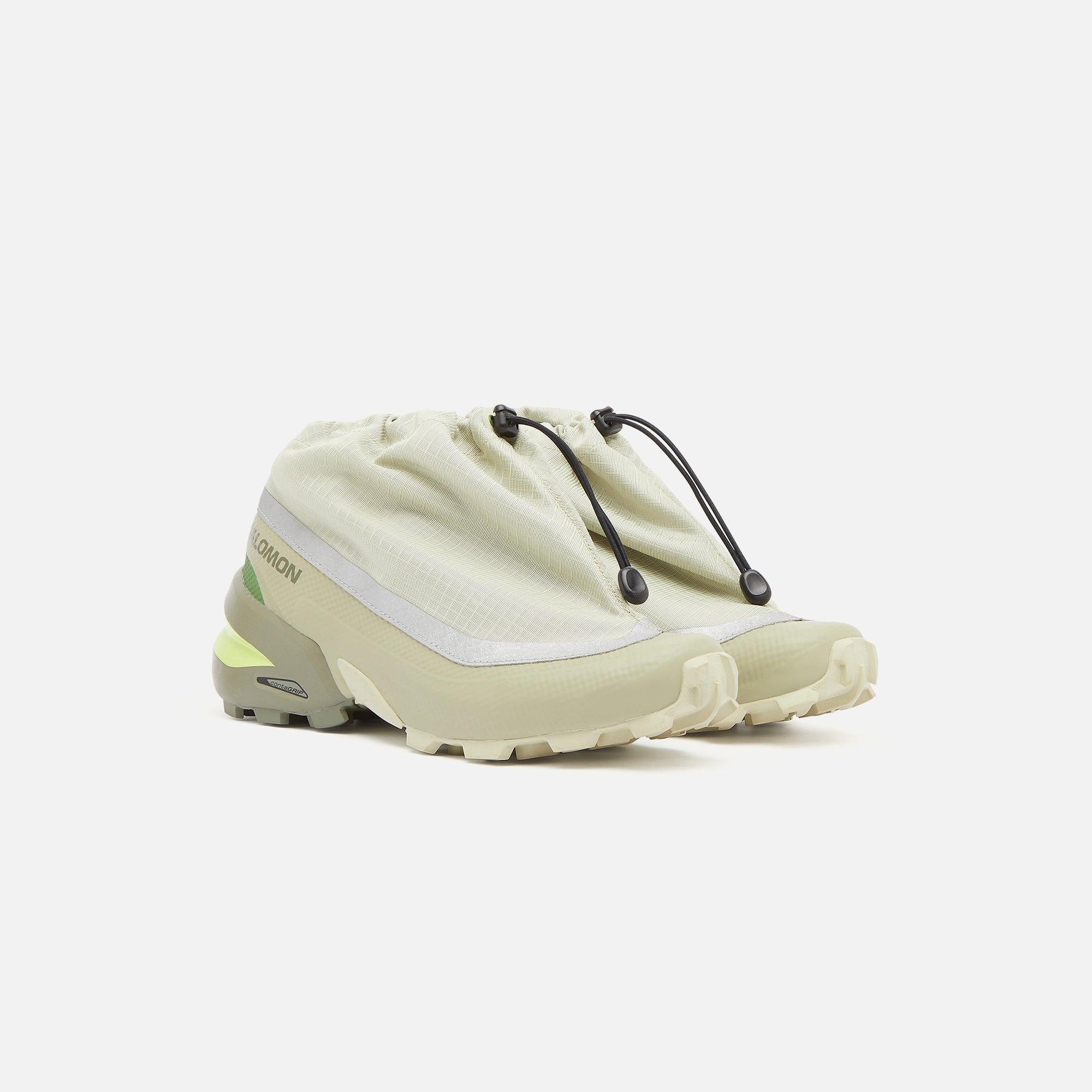 Women's MM6 Maison Margiela Cross Low silhouette Mesh bootie construction Adjustable bungee toggle Taped paneling Color-blocked Interior heel pulls and laces Salomon and Margiela branding on side panels Heel counters CELL midsole Rubber tread outsole Style: s66ws0103p7011ha456 Color: Alfalfa / Tea / Sharp Green Material: Mesh