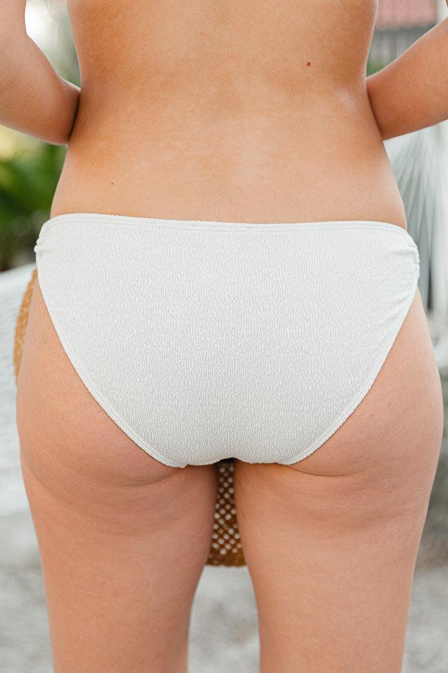 Details Oatmeal Textured O-Ring High Waisted Bikini Bottoms Low waisted O-ring detail Lined Size small from waist to hem: 10" Material and Care 90% polyester, 10% spandex Hand wash, dry flat Patterns may vary Materials may have natural variations Colors may vary from different viewing devices.