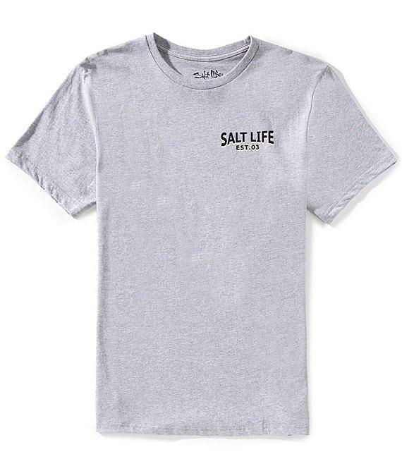 From Salt Life, this t-shirt features: Crew neckline Short sleeves "Salt Life" logo on the chest "Salt Life" logo and scenic island screen print on the back Pullover construction Classic fit Preshrunk ringspun jersey cotton Machine wash/tumble dry Imported.