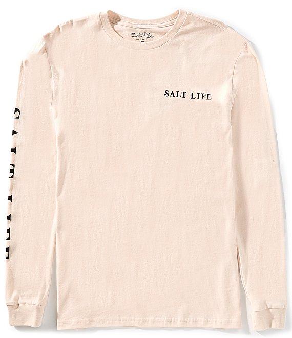 From Salt Life, this t-shirt features: Crew neckline Long sleeves with sleeve graphic hit Front logo and back graphic Relaxed fit Pullover styling Cotton Machine wash/tumble dry Imported