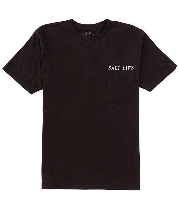 From Salt Life, this t-shirt features: Crew neckline Short sleeves Front and back graphic Relaxed fit Pullover construction Cotton Machine wash/tumble dry Imported.