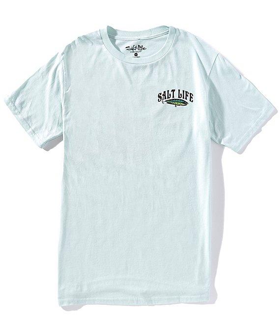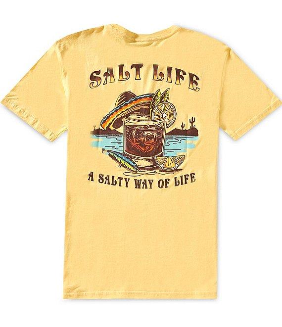 From Salt Life, this t-shirt features: Crew neckline Short sleeves "Salt Life" logo and small graphic on the front "Salt Life" logo, large graphic, and "A Salty Way Of Life" verbiage on the back Pullover construction Preshrunk ringspun jersey cotton Machine wash/tumble dry Imported.