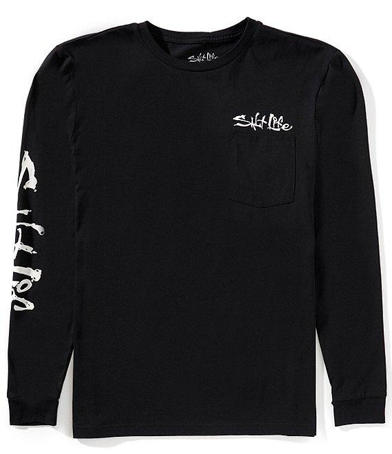 From Salt Life, this t-shirt features: Crew neckline Long sleeves Front patch pocket Logo print on the left side of chest Graphic with "Salt Life" and "Salty State Of Mind" verbiage screenprint on the back Pullover construction Classic fit Cotton jersey Machine wash/tumble dry Imported.