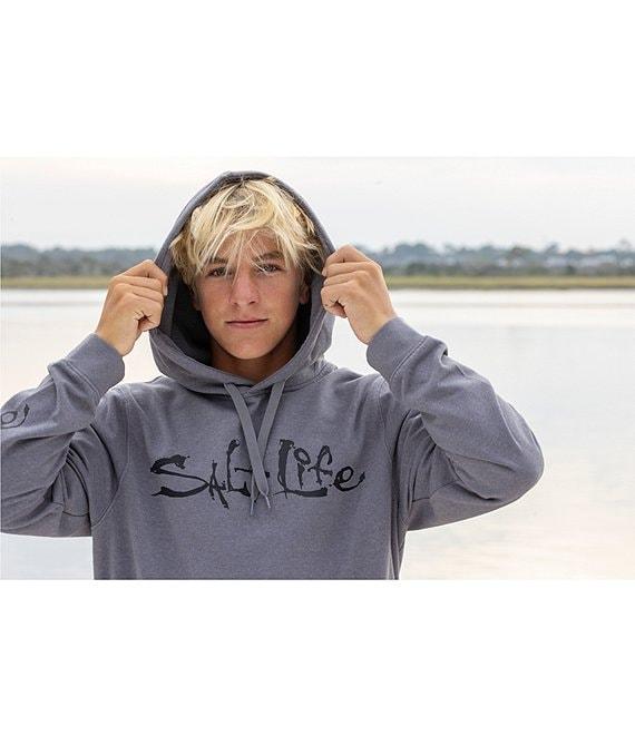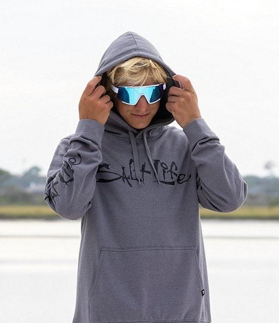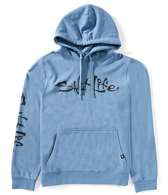From Salt Life, this hoodie features: Attached hood with drawcord Long sleeves (one with "Salt Life" scripted logo detail) "Salt Life" scripted logo on the front Front kangaroo pocket Ribbed cuffs and hem Pullover construction Cotton/polyester fleece Machine wash/tumble dry Imported.
