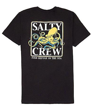 Keep yourself at ease without losing style by wearing the Salty Crew Ink Slinger Standard Short Sleeve Tee. Regular fit. Short sleeves and crew neck. Pullover style with straight hem. Graphic print on the chest and at the back. 100% cotton. Machine wash, tumble dry. Imported. Measurements: Length: 30 in Product measurements were taken using size MD. Please note that measurements may vary by size.