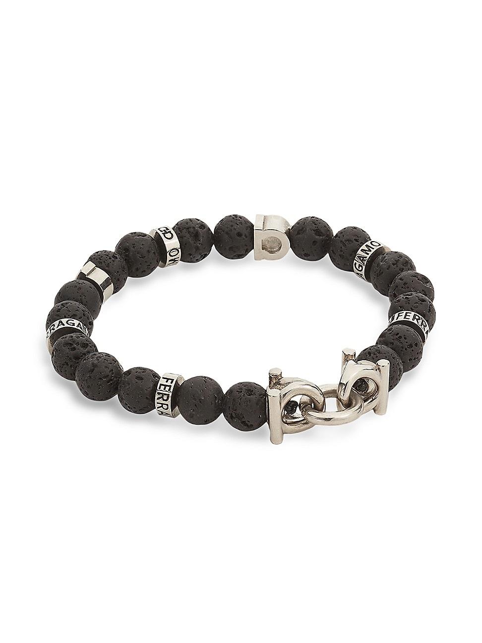Elasticized bracelet made with stone beads,FERRAGAMO lettering inserts, and a metal Gancini charm. Stone Brass Elasticized Made in Italy ABOUT THE BRAND Italian designer FERRAGAMO began his journey in 1927 with a vision of creating the worlds most beautiful shoes. The label expanded to menswear in the 1970s, and remains famed for its made-in-Italy pieces. The craftsmanship inherent in its shoes is also found in accessories like sunglasses, belts and ties. The brands signature Gancini logo-a backwards horseshoe-can be found on its classic loafers and fine leather goods. Men Accessories - Fashion Accessories > Ferragamo > Saks Fifth Avenue > Barneys. FERRAGAMO. Color: Black Grey.