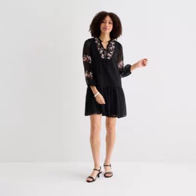 Sam And Jess Womens 3/4 Sleeve Floral Shift Dress