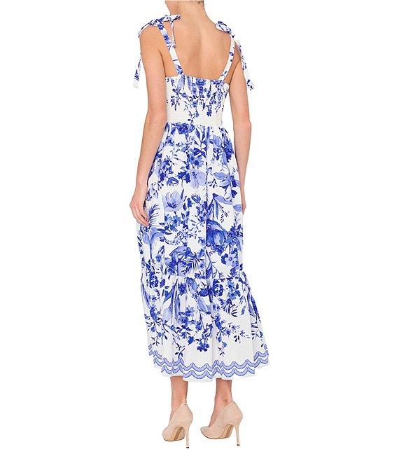 Sam Edelman Floral Print Sweetheart Neck Sleeveless A-Line Midi Dress