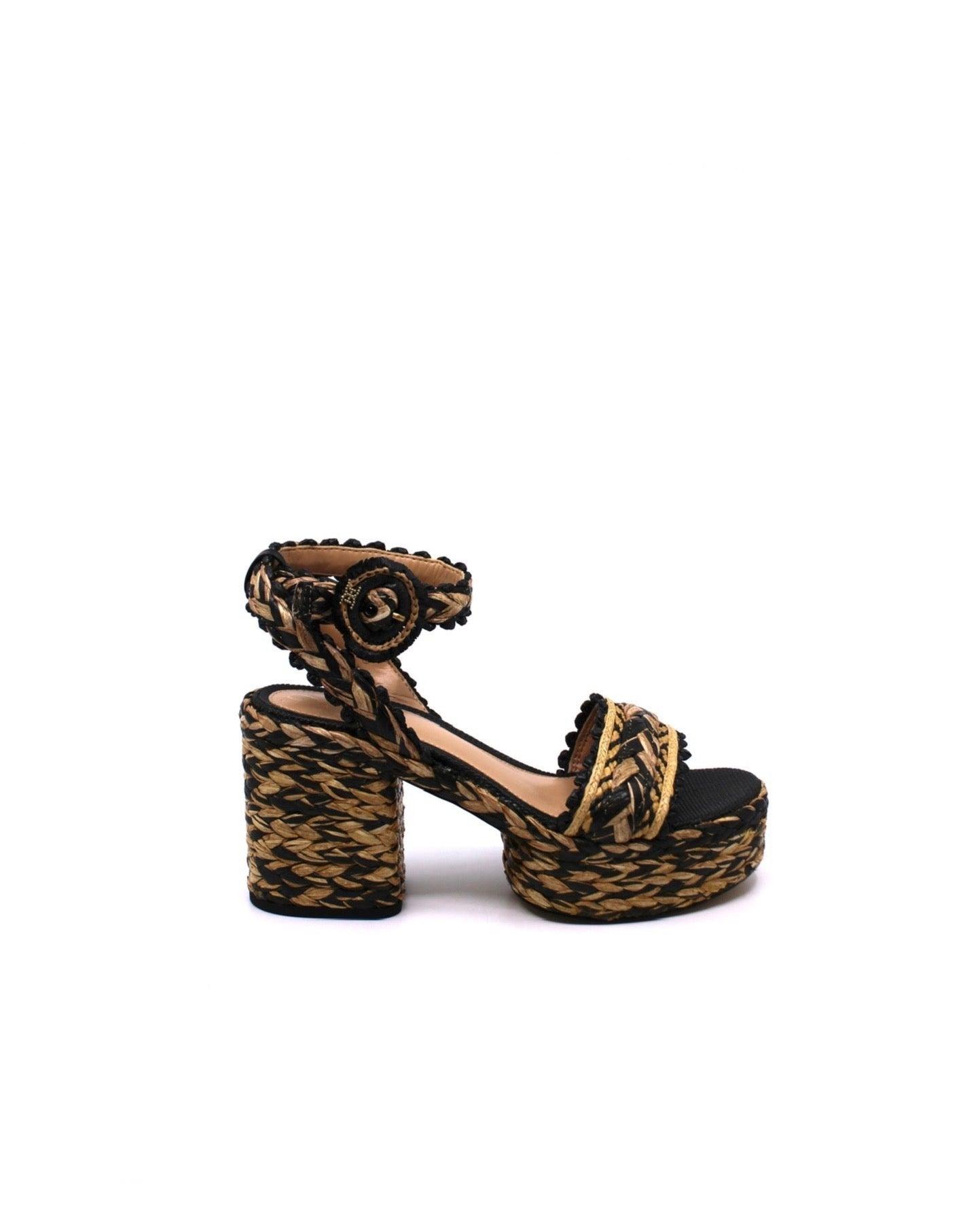 The Sam Edelman Iliana in Black/natural is a braided woven ankle-wrap sandals lift your going out look to the next level with a stacked platform. Pair with a breezy sundress or flare jeans for the perfect warm weather look to bring you from day to night.