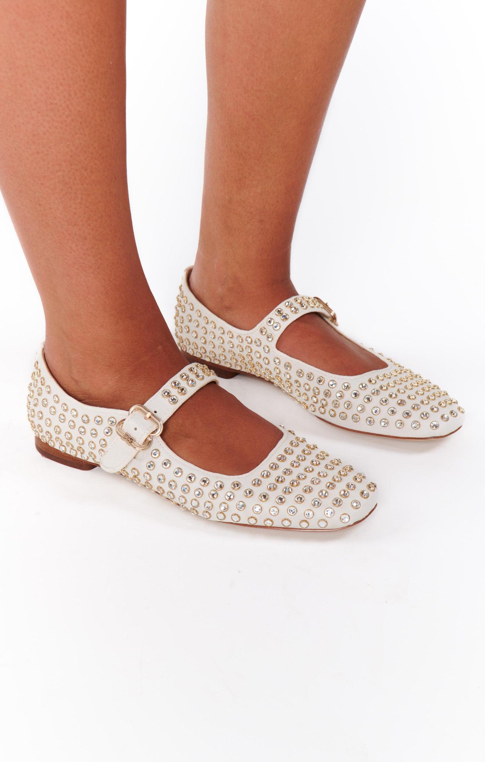 Make an entrance with Michaela! Not your average mary jane flat, this party-ready flat features a gem-encrusted upper that's sure to turn heads.