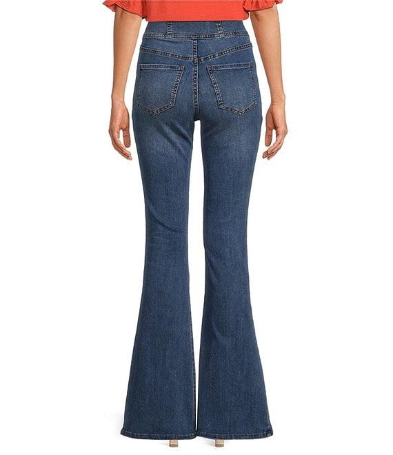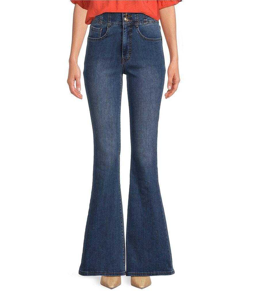 From Sam Edelman, these jeans feature: Stretch denim fabrication Flare leg silhouette High rise Skinny fit Double waist band 5 pocket styling Front triple button and zipper closure Approx. 32" inseam, 12" rise Cotton/polyester/viscose/spandex Machine wash Imported.