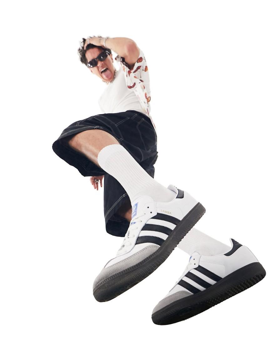 How to choose your size Our sizing buttons list the Mens size first (M) and the equivalent Womens size second (W) Ex. If you usually wear a Womens size 9, select the button with M 8.0 / W 9.0 Product Features Sleek, soccer-inspired low-top sneakers with a lace-up closure Full grain leather upper with gritty suede and gold foil details Soft leather upper and suede overlays for a premium touch Signature 3-Stripes branding at the sides for authentic adidas energy Synthetic leather lining and cushioned insole for interior comfort Gum rubber midsole and cupsole for a rugged, timeless look The adidas Originals Samba OG is imported. Born on the soccer field, the adidas Originals Samba OG Casual Shoes metamorphosized into a lifestyle staple and an icon in sneaker culture. These editions stay true to the Samba legacy, with premium leather, suede overlays and captivating accents living up to its legendary name by delivering the quintessentially classic adidas look. Size: 10.5. Color: Black. Gender: unisex. Age Group: adult. Pattern: Striped. Material: Leather/Suede. Adidas Originals Samba OG Casual Shoes in Black/Core Black Size 10.5 Leather/Suede