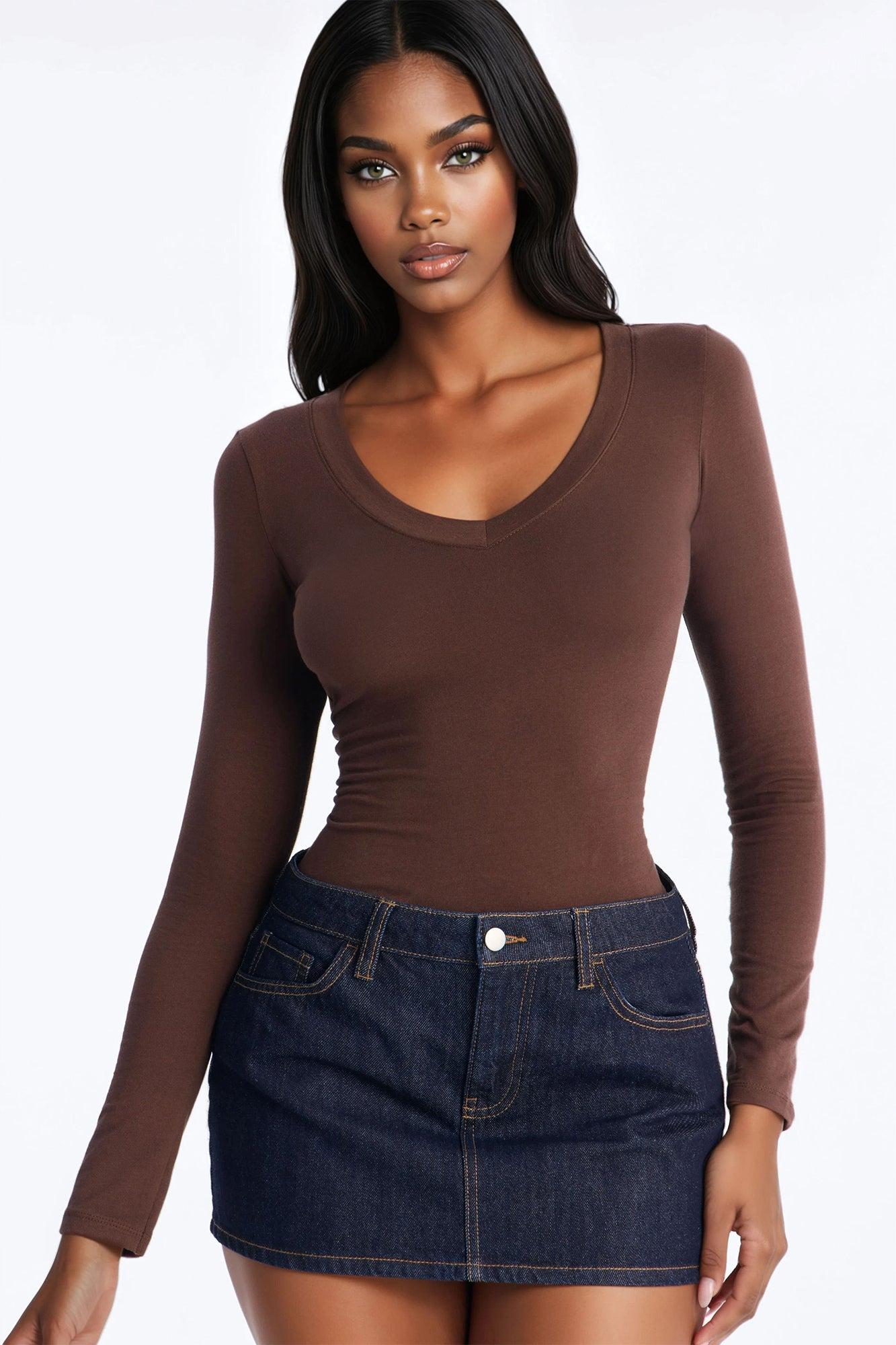 Sami V Neck Top - Brown Female