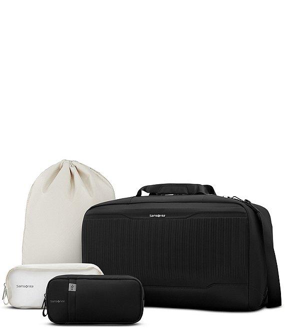 From the Silhouette 18 Collection by Samsonite, this travel duffel features: First came Silhouette in 1958, and now, the Silhouette 18 Collection. Rooted in our legacy, this luggage knows its way around the world. Still sleek but modern in design, it s the very definition of timeless. Our hardside is made from the tough stuff 100% polycarbonate, to be exact. And our softside offers the same durability. Both ready for wherever you're going next. Specially designed to complement any bag from the time-honored Silhouette Collection, our travel duffel has a lot to offer. It features a wide mouth opening for easy packing. Designated pockets for the included shoe bag, 3-1-1 WetPak, and TecKit Pouch for next-level organization. Dedicated padded sleeve for your laptop or tablet and a quick access front pocket so you can keep your travel business in order. And to make life on the move easier, we've included a Stack-It strap to secure onto any larger checked luggage. Organization: Polyester Interior features a dedicated padded sleeve for your laptop or tablet 3-1-1 removable WetPak™ for toiletries & shoe bag TecKit™ pouch to keep your tech accessories organized Secret zipper pocket on back, Holder for your AirTag™ device A quick access front pocket so you can keep your travel business in order Design: Magnetically closing top handles A StackIt™ Strap to secure onto any larger checked luggage Dimensions approx.: 20.5" H x 12" L x 9" W Linear dimension approx. 41.5" Weight: 3.46 lbs. Imported.
