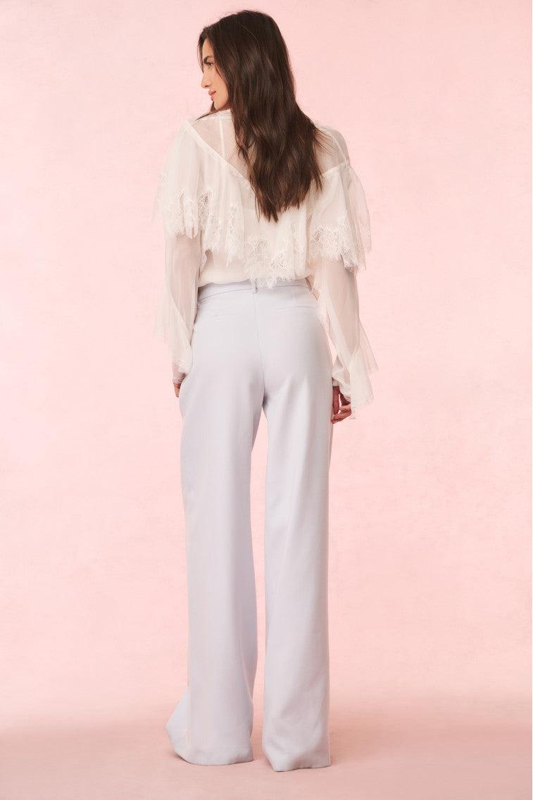 Step on the scene in our Samuela Pant. Expertly tailored, these elegant bottoms are designed from a warm, wool blend with a bit of stretch for comfort. With a mid rise fit, these wide leg, flare-shaped pants feature a waistband with belt loops, slash pockets, and back belt pockets. Pair with the Reiser Jacket for a full suiting moment. Mid Rise Wide Leg Center Fly Zipper
